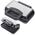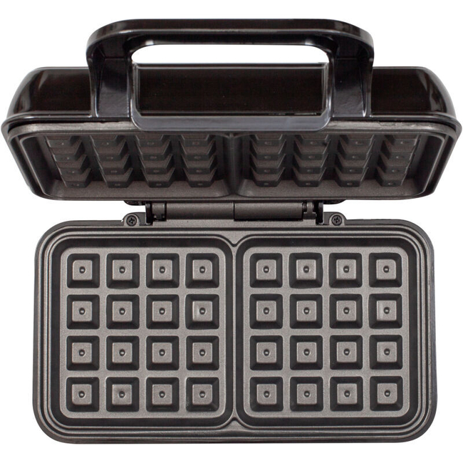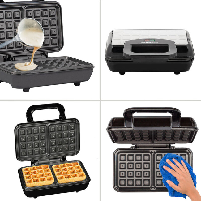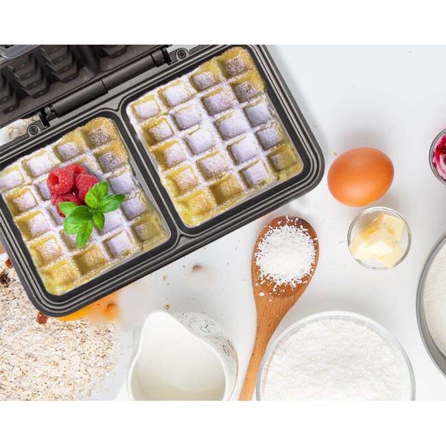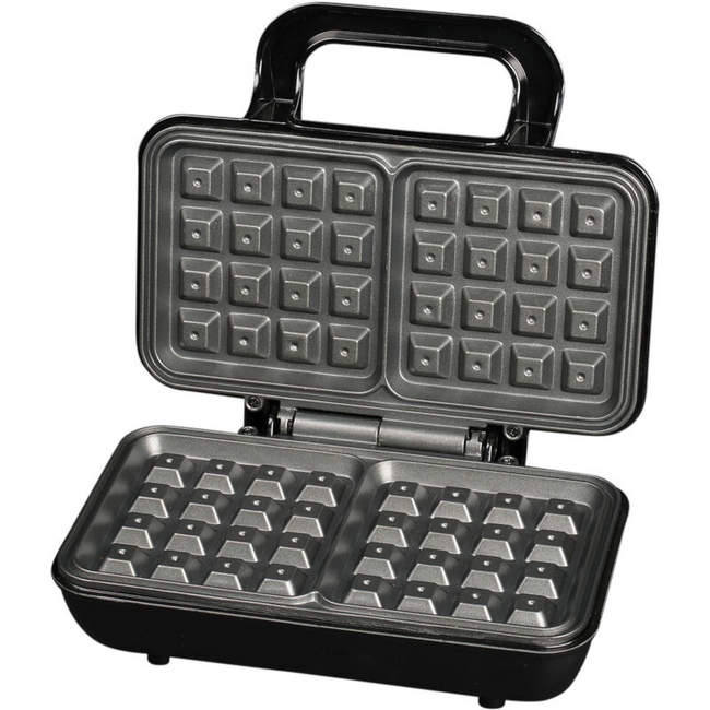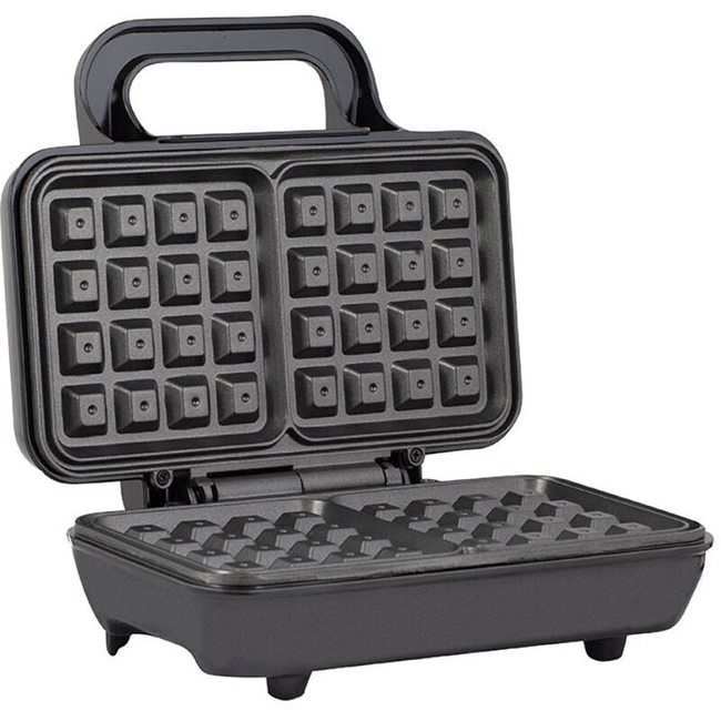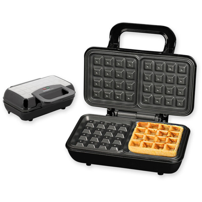Βαφλιέρα για 2 τετράγωνες βάφλες σε σχήμα 700W με αντικολλητικές πλάκες. Χάρη στην αντικολλητική της επίστρωση δεν χρειάζεται λάδι για να φτιάχνετε πιο ελαφριές και γευστικές βάφλες και να μπορείτε να τις αφαιρείτε εύκολα. Έχει μικρό μέγεθος και αποθηκεύεται εύκολα.