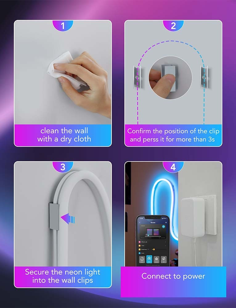 - Designed for mounting and securing Govee Neon Rope Light 2