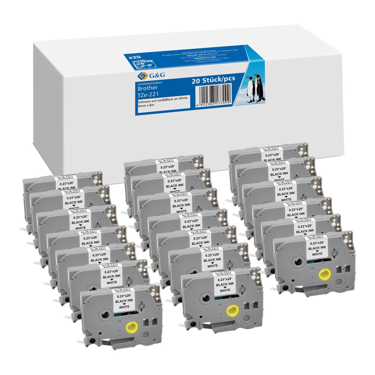 Αξεσουάρ για εκτυπωτές ετικετών G&G συμβατή ταινία ετικετών 20x 9mm x 8m μαύρο σε λευκό για Brother TZe-221