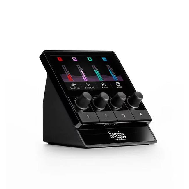 Stream 100 Audio Controller είναι ένα κεντρικό χαρακτηριστικό τουκιτ, επιτρέποντας τη διαχείριση 8 ταυτόχρονων ηχητικών κομματιών σε 2 σελίδες. Έρχεται εξοπλισμένο με τέσσερις πολυλειτουργικούς περιστροφικούς κωδικοποιητές που προσφέρουν ξεχωριστό έλεγχο έντασης και λειτουργίες σίγασης. Η οθόνη 4.3" TFT LCD με υψηλή φωτεινότητα εμφανίζει δυναμικά VU μέτρα, επιτρέποντας τη παρακολούθηση επιπέδων σε πραγματικό χρόνο.