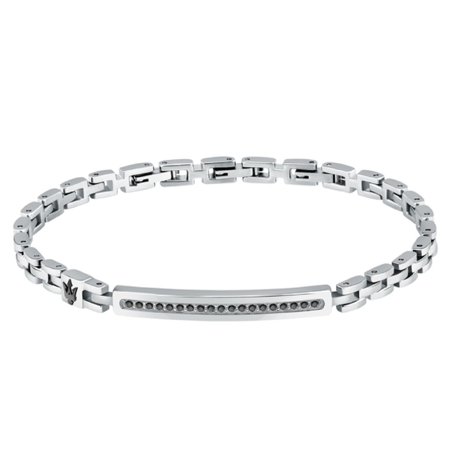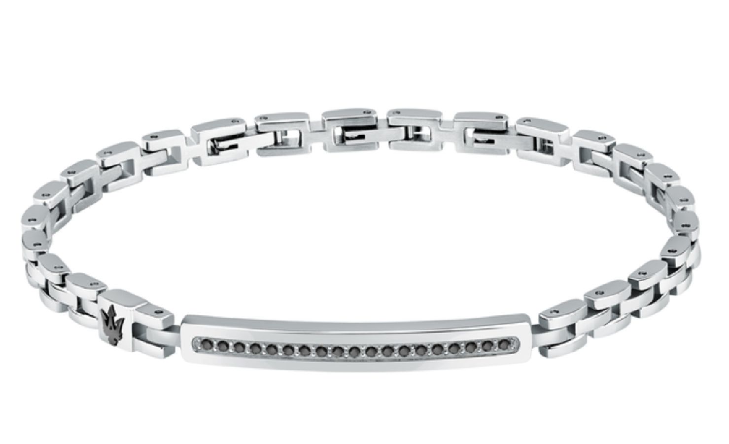MAN BRACELET MASERATI JM224AVD41 (18-3,5CM ). Material: STAINLESS STEEL. Colour: GREY. Measures: 18-3,5CM.. . ICONIC BR TAG W/ BLK CRY+IP BLK 18.5+3CM