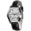 Ανδρικό Ρολόι Armani Ar0670 (36mm) Δερμάτινο Λουράκι Μαύρο