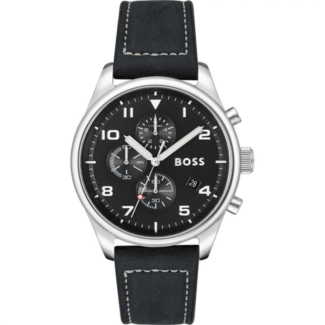 Ανδρικό Ρολόι Boss 1513987 (44mm) Δερμάτινο Λουράκι Μαύρο
