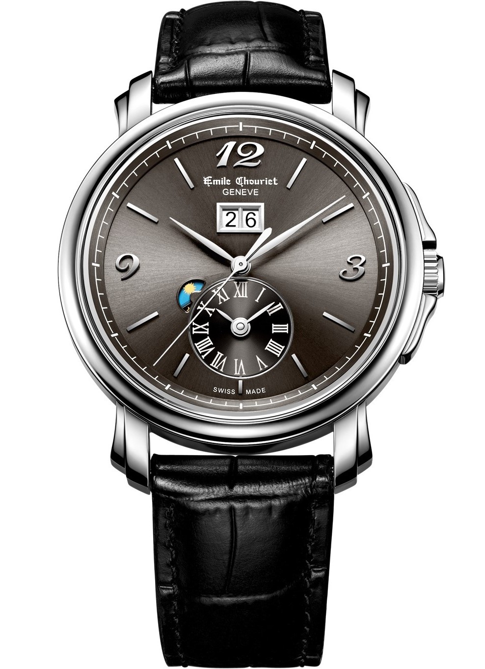 Ανδρικό Ρολόι Emile Chouriet 081168G396826 (39mm) Δερμάτινο Λουράκι Μαύρο