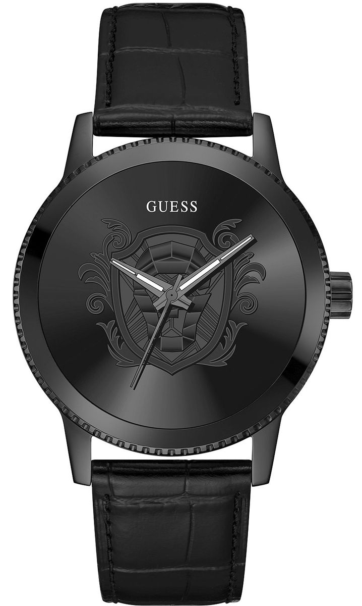 Ανδρικό Ρολόι Guess Gw0566G2 (44mm) Δερμάτινο Λουράκι Μαύρο
