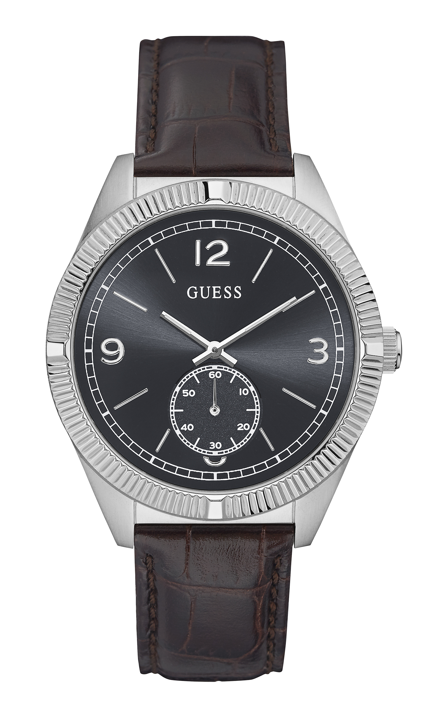 Ανδρικό Ρολόι Guess W0873G1 (42mm) Δερμάτινο Λουράκι Καφέ