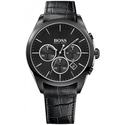 Ανδρικό Ρολόι Hugo Boss 1513367 (44mm) Δερμάτινο Λουράκι Μαύρο