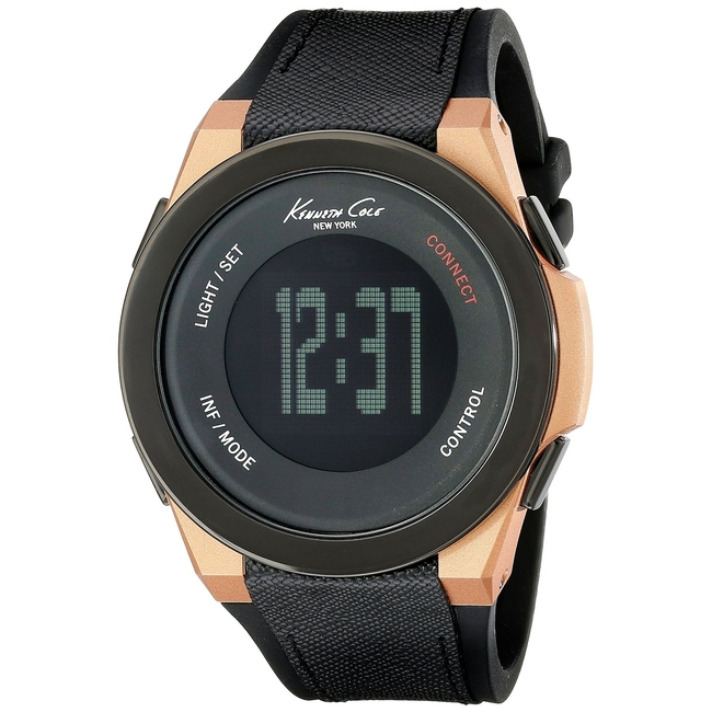 Ανδρικό Ρολόι Kenneth Cole 10022939 (47mm) Καουτσούκ Λουράκι-Δερμάτινο Λουράκι Μαύρο