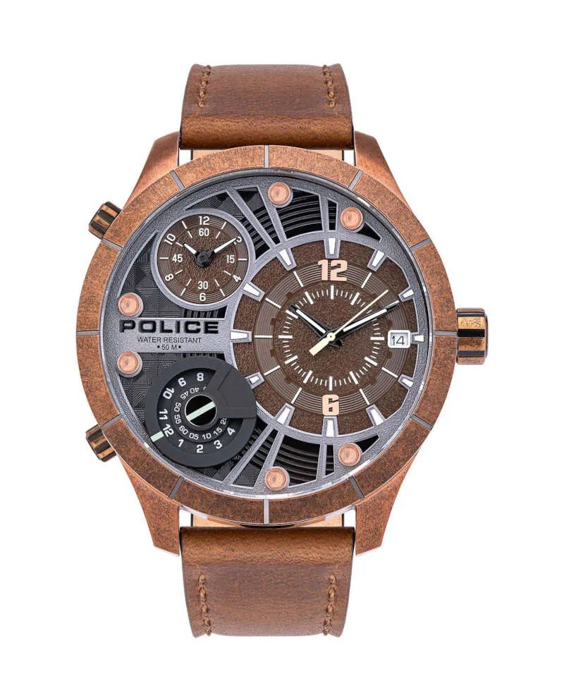 Ανδρικό Ρολόι Police Pl15662Xsqr1 (52mm) Δερμάτινο Λουράκι Καφέ