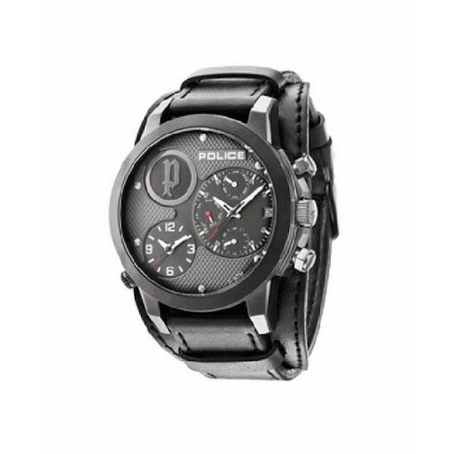 Ανδρικό Ρολόι Police R1451230001 (45mm) Δερμάτινο Λουράκι Μαύρο