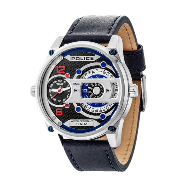 Ανδρικό Ρολόι Police R1451279001 (55mm) Δερμάτινο Λουράκι Μαύρο