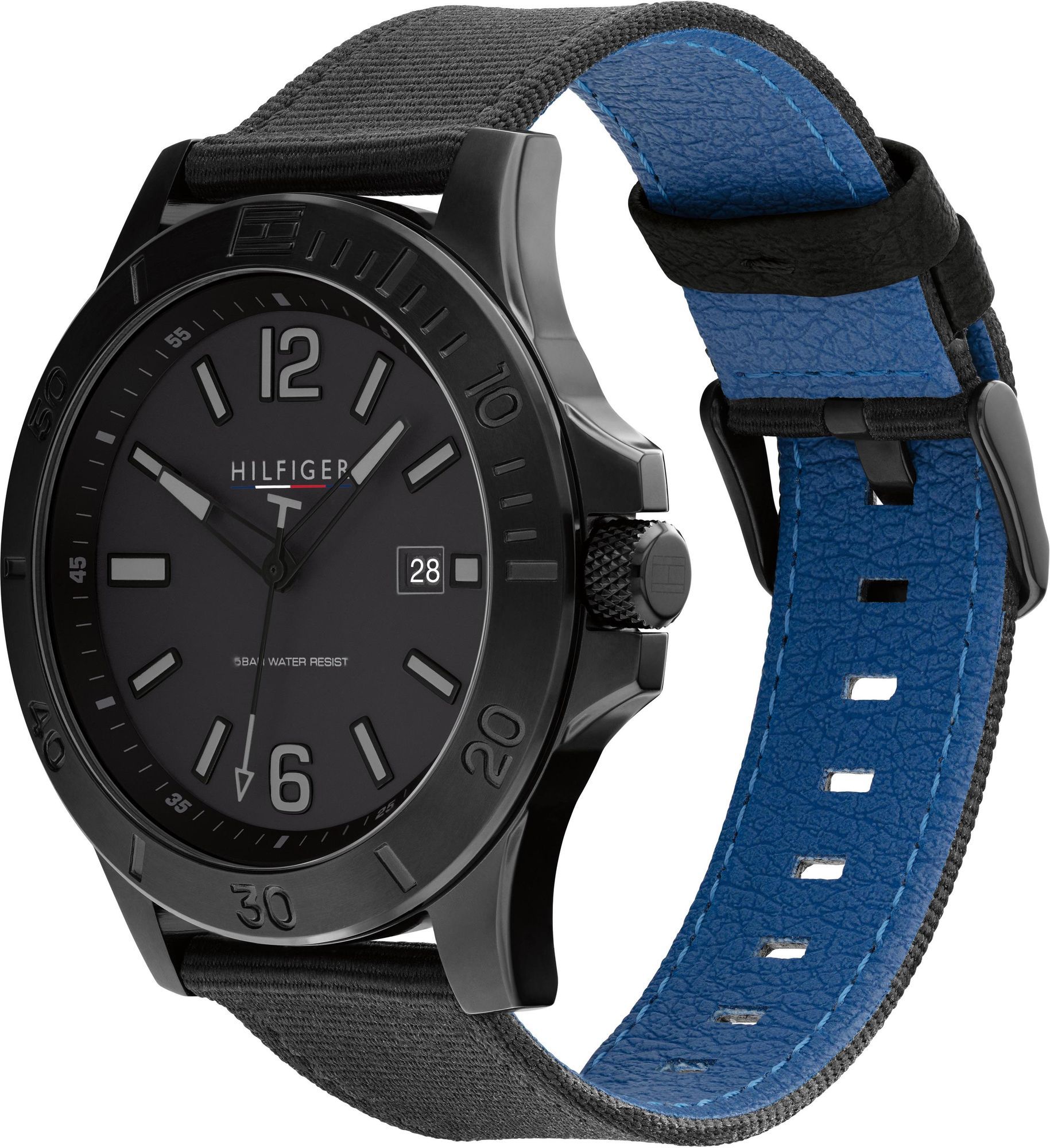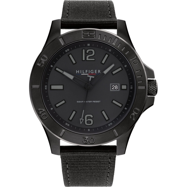 Ανδρικό Ρολόι Tommy Hilfiger 1791993 (46mm) Υφασμάτινο Λουράκι Μαύρο