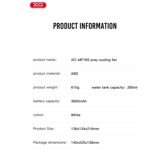 Ανεμιστηράκι USB XO MF76 με υγροποιητή