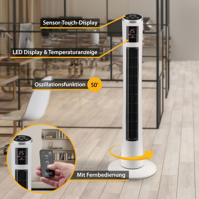 Ανεμιστήρας Δαπέδου First Austria FA-5560-5-WI Λευκός πύργος με οθόνη αφής 3 ταχυτήτων 102cm 40W