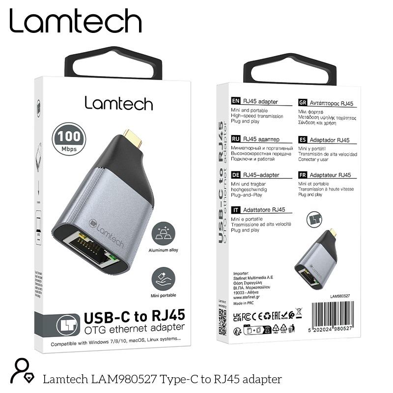 <p style="text-align: right;" data-start="211" data-end="265"><strong data-start="217" data-end="263"><a href="https://drive.google.com/file/d/1WVClJ-Jt5OgXx-f3rjy2qz2JqQ1OZ-Nm/view" target="_blank" rel="noopener">EU ΔΗΛΩΣΗ ΣΥΜΜΟΡΦΩΣΗΣ</a> </strong></p><p data-start="211" data-end="265"><strong data-start="217" data-end="263">LAMTECH USB-C σε RJ45 OTG Ethernet Adapter</strong></p><p data-start="266" data-end="318"><strong data-start="266" data-end="318">Σταθερή ενσύρματη σύνδεση – όπου κι αν βρίσκεσαι</strong></p><p data-start="320" data-end="551">Ο <strong data-start="322" data-end="355">LAMTECH USB-C σε RJ45 Adapter</strong> προσφέρει αξιόπιστη και γρήγορη ενσύρματη σύνδεση Ethernet για συσκευές που διαθέτουν θύρα <strong data-start="447" data-end="456">USB-C</strong> (όπως laptops, tablets ή smartphones), ιδανικός για χρήση στο σπίτι, στο γραφείο ή εν κινήσει.</p><hr data-start="553" data-end="556" /><p data-start="558" data-end="590"><strong data-start="565" data-end="590">Κύρια Χαρακτηριστικά:</strong></p><ul data-start="592" data-end="991"> <li data-start="592" data-end="676"><p data-start="594" data-end="676"><strong data-start="596" data-end="630">USB-C σε RJ45 Ethernet Adapter</strong> – Ιδανικός για συσκευές χωρίς θύρα Ethernet</p></li> <li data-start="677" data-end="762"><p data-start="679" data-end="762"><strong data-start="681" data-end="706">Ταχύτητες έως 100Mbps</strong> – Ομαλή περιήγηση, video streaming &amp; μεταφορά αρχείων</p></li> <li data-start="763" data-end="842"><p data-start="765" data-end="842"><strong data-start="767" data-end="782">Plug &amp; Play</strong> – Δεν απαιτείται εγκατάσταση (στις περισσότερες συσκευές)</p></li> <li data-start="843" data-end="910"><p data-start="845" data-end="910"><strong data-start="847" data-end="876">Μίνι &amp; Φορητός Σχεδιασμός</strong> – Ελαφρύς, ιδανικός για ταξίδια</p></li> <li data-start="911" data-end="991"><p data-start="913" data-end="991"><strong data-start="915" data-end="937">Ευρεία Συμβατότητα</strong> – Συμβατό με <strong data-start="951" data-end="969">Windows 7/8/10</strong>, <strong data-start="971" data-end="980">macOS</strong>, <strong data-start="982" data-end="991">Linux</strong></p></li></ul><hr data-start="993" data-end="996" /><p data-start="998" data-end="1023"><strong data-start="1005" data-end="1023">Ιδανική Χρήση:</strong></p><p data-start="1025" data-end="1119">Κατάλληλος για laptops, ultrabooks, tablets και smartphones χωρίς θύρα Ethernet. Ιδανικός για:</p><ul data-start="1120" data-end="1241"> <li data-start="1120" data-end="1143"><p data-start="1122" data-end="1143">Επαγγελματική χρήση</p></li> <li data-start="1144" data-end="1161"><p data-start="1146" data-end="1161">Τηλεκπαίδευση</p></li> <li data-start="1162" data-end="1176"><p data-start="1164" data-end="1176">Ξενοδοχεία</p></li> <li data-start="1177" data-end="1212"><p data-start="1179" data-end="1212">Γραφεία &amp; αίθουσες συνεδριάσεων</p></li> <li data-start="1213" data-end="1241"><p data-start="1215" data-end="1241">Εφεδρική ενσύρματη σύνδεση</p></li></ul><hr data-start="1243" data-end="1246" /><p data-start="1248" data-end="1270"><strong data-start="1255" data-end="1268">Σημείωση:</strong></p><p data-start="1271" data-end="1454">Εάν η σύνδεση στο δίκτυο δεν λειτουργεί αυτόματα μετά τη σύνδεση με το καλώδιο Ethernet, ίσως χρειαστεί <strong data-start="1375" data-end="1413">χειροκίνητη εγκατάσταση του driver</strong> (σε ορισμένες εκδόσεις Windows ή Linux).</p><hr data-start="1456" data-end="1459" /><p data-start="1461" data-end="1494"><strong data-start="1468" data-end="1494">Τεχνικά Χαρακτηριστικά</strong></p><div class="_tableWrapper_1rjym_13 group flex w-fit flex-col-reverse" tabindex="-1"><table class="w-fit min-w-(--thread-content-width)" data-start="1496" data-end="2024"><thead data-start="1496" data-end="1561"><tr data-start="1496" data-end="1561"><th data-start="1496" data-end="1525" data-col-size="sm">Χαρακτηριστικό</th><th data-start="1525" data-end="1561" data-col-size="sm">Περιγραφή</th></tr></thead><tbody data-start="1628" data-end="2024"><tr data-start="1628" data-end="1693"><td data-start="1628" data-end="1657" data-col-size="sm"><strong data-start="1630" data-end="1650">Κωδικός Μοντέλου</strong></td><td data-start="1657" data-end="1693" data-col-size="sm">LAM980527</td></tr><tr data-start="1694" data-end="1758"><td data-start="1694" data-end="1723" data-col-size="sm"><strong data-start="1696" data-end="1705">Θύρες</strong></td><td data-start="1723" data-end="1758" data-col-size="sm">USB-C αρσενικό σε RJ45 θηλυκό</td></tr><tr data-start="1759" data-end="1824"><td data-start="1759" data-end="1788" data-col-size="sm"><strong data-start="1761" data-end="1781">Ταχύτητα Δικτύου</strong></td><td data-start="1788" data-end="1824" data-col-size="sm">Έως 100Mbps</td></tr><tr data-start="1825" data-end="1890"><td data-start="1825" data-end="1854" data-col-size="sm"><strong data-start="1827" data-end="1842">Συμβατότητα</strong></td><td data-start="1854" data-end="1890" data-col-size="sm">Windows 7/8/10, macOS, Linux</td></tr><tr data-start="1891" data-end="1958"><td data-start="1891" data-end="1920" data-col-size="sm"><strong data-start="1893" data-end="1907">Λει