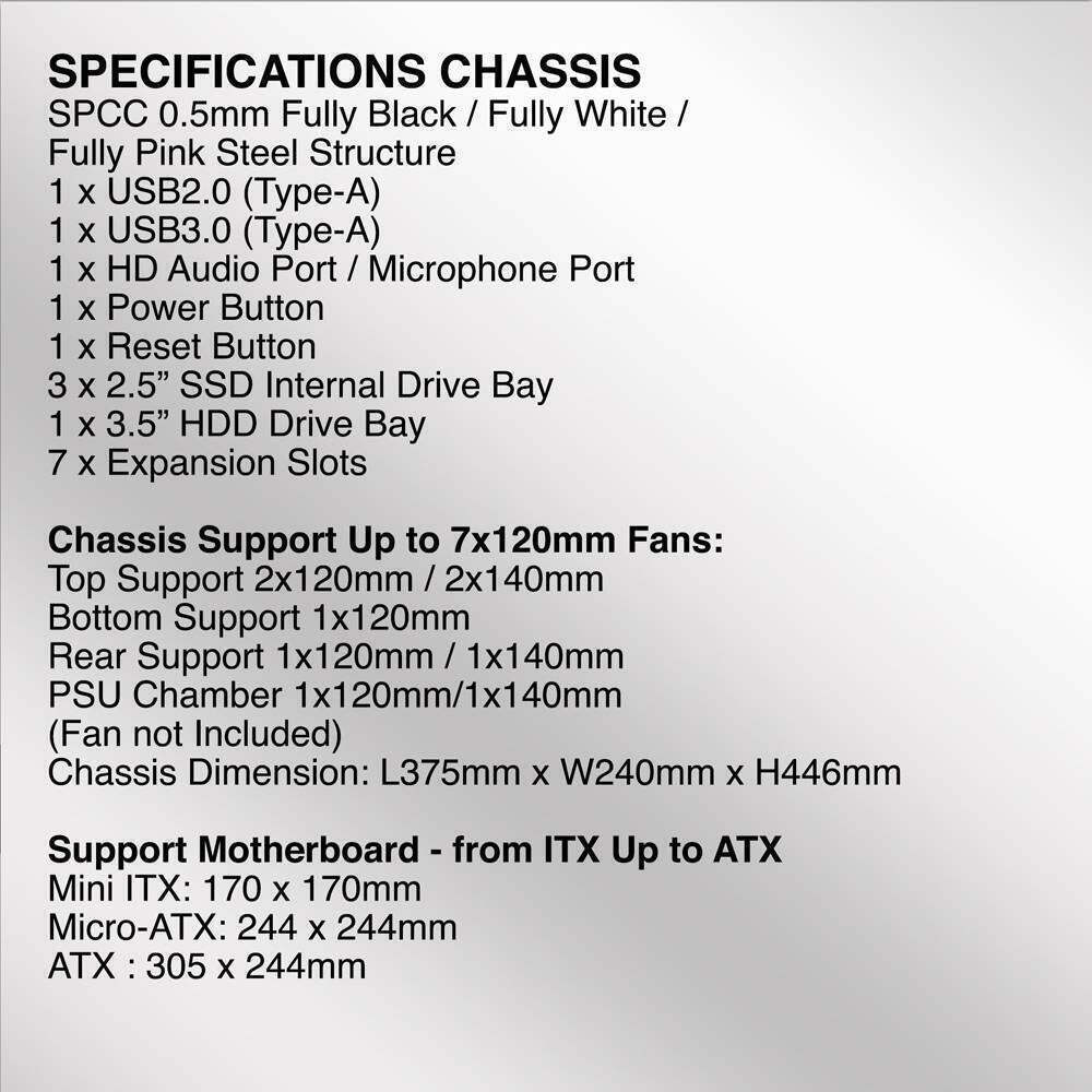 Micro ATX Support244 x 244 mm
