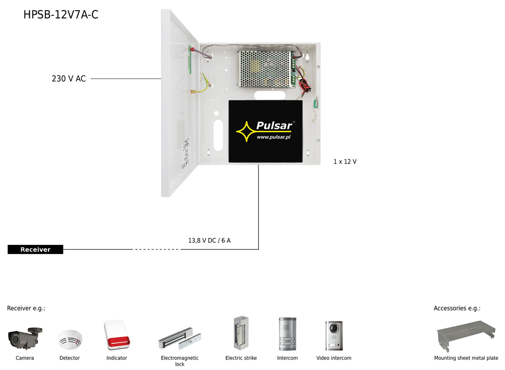 Τροφοδοτικό CCTV Pulsar HPSB-12V7A-C, 13.8V/7A/17Ah buffer