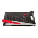 Πρώτη πλευρά: Τύπου γκιλοτίνας Περιοχή εργασίας: 300 x 170 χιλιοστά Χωρητικότητα: 5 φύλλα (80g / m²m) Προστασία δακτύλων Χαρτί με βάση τις αποστάσεις και κλίμακες Λαβή για τράβηγμα με επιφάνεια από καουτσούκ