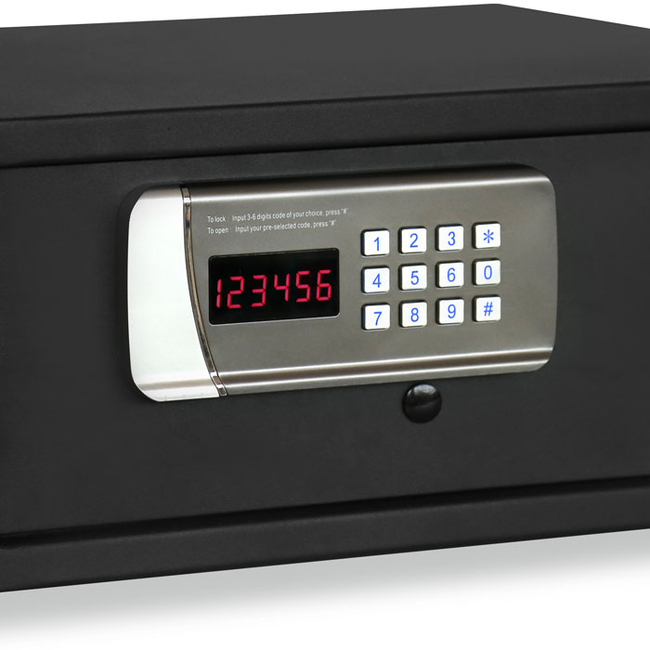 Είναι εξοπλισμένο με ηλεκτρονική κλειδαριά, την οποία μπορείτε να ρυθμίσετε πανεύκολα για να επαναπρογραμματίστε το χρηματοκιβώτιο με τον δικό σας προσωπικό κωδικό πρόσβασης.
