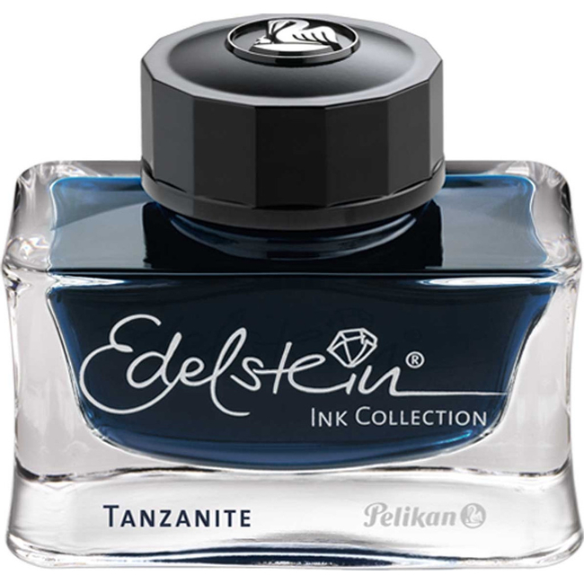 Το μελάνι Pelikan Edelstein Tanzanite προσφέρει μια κατά βάση γαλάζια-μαύρη απόχρωση με πλούσιες αποχρώσεις που κυμαίνονται από έντονο μπλε σε πιο σκούρο μπλε-μαύρο. Παράγει μια εξαιρετική αισθητική εμπειρία, ιδιαίτερα σε σκληρό χαρτί, όπου μπορεί να αποκαλύψει μια απογοητευτική κόκκινη λάμψη στα σημεία συγκέντρωσης μελανιού, προσδίδοντας βάθος στη γραφή.