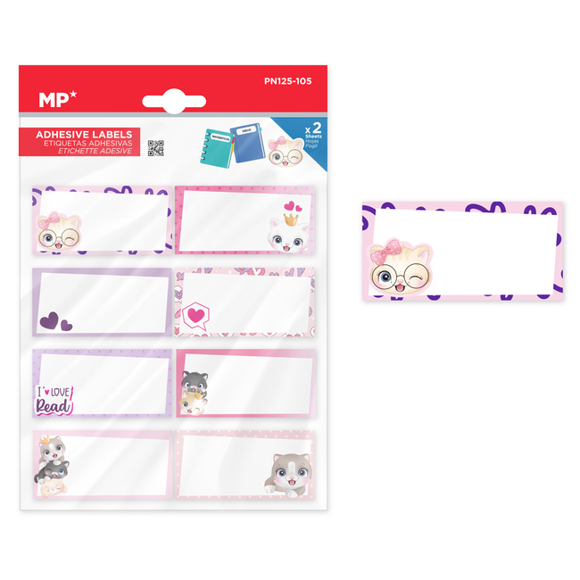 MP αυτοκόλλητες ετικέτες τετραδίων PN125-105, 65x32mm, 8 σχέδια, 16τμχ