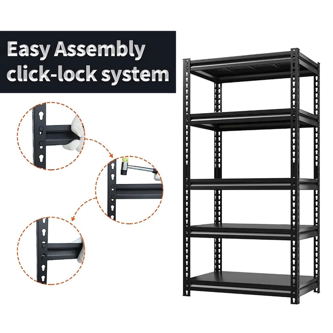 Μεταλλική Ραφιέρα Home Use HUH-0248 με 5 Ράφια, 90X40X183Cm, Μαύρη