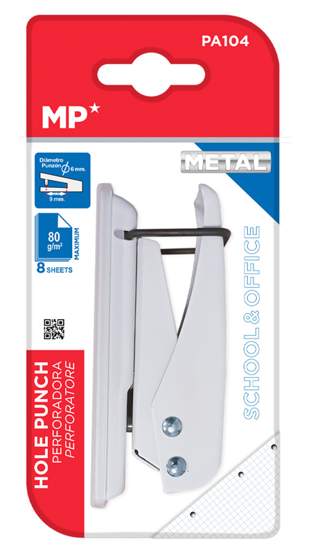 MP μεταλλικός διακορευτής PA104, μονός, 6mm, 2x9cm, λευκός