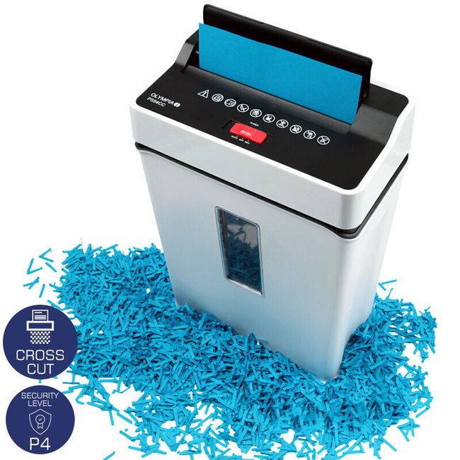Cross cut document and credit card shredder with P4 security level.