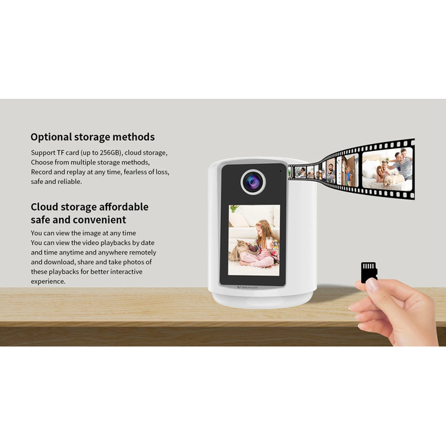 Η αποθήκευση των αρχείων γίνεται απευθείας σε κάρτα μνήμης micro SD (δεν συμπεριλαμβάνεται) ή σε λογαριασμό στο cloud.