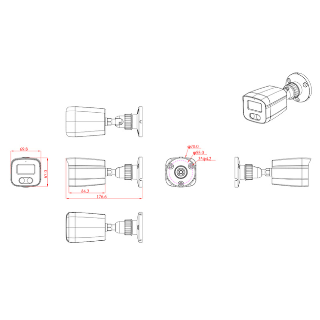 Υβριδική κάμερα 4 σε 1 (AHD, TVI, CVI, CVBS), με φακό 2.8mm, 1/2.5" CMOS αισθητήρα, ανάλυση 8MP και εμβέλεια φωτός έως 25m. Διαθέτει διακόπτη για να αλλάξετε την λειτουργία εύκολα και γρήγορα σε AHD, TVI, CVI, CVBS, αλλά και μικρόφωνο για μεταφορά ήχου μέσω του ομοαξονικού καλωδίου (Audio Over Coaxial) χωρίς να απαιτείται χρήση έξτρα καλωδίου. Διαθέτει μεταλλικό σώμα με στεγανοποίηση επιπέδου IP67 γεγονός που την καθιστά κατάλληλη για χρήση σε εξωτερικούς χώρους.