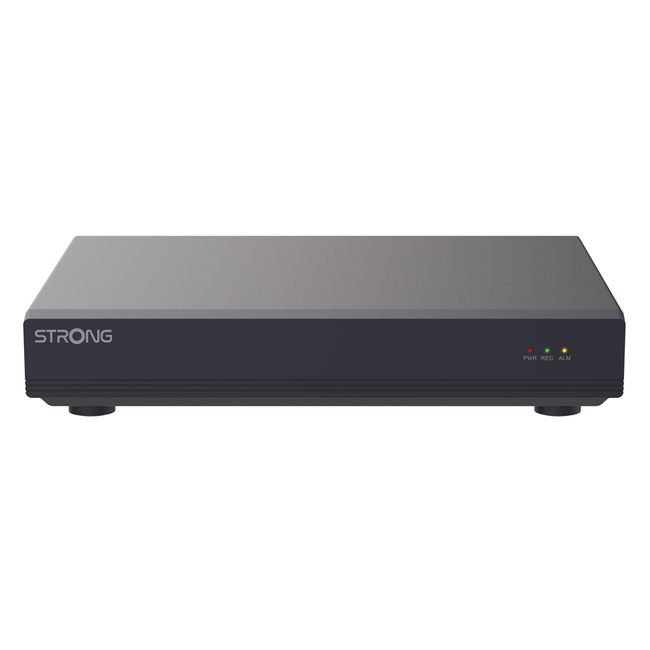 NVR καταγραφικό της STRONG, με υποστήριξη έως 4 PoE καναλιών και ανάλυση καταγραφής έως 4K.