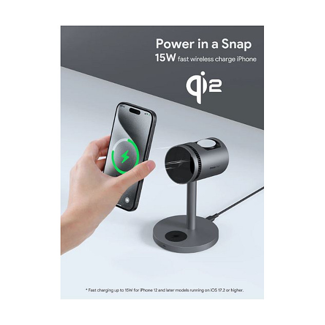Αυτός ο φορτιστής έχει βελτιστοποιηθεί για τις σειρές iPhone 12-16, Apple Watch Series 1+ και είναι συμβατός με όλες τις συσκευές που υποστηρίζουν Qi/MagSafe.