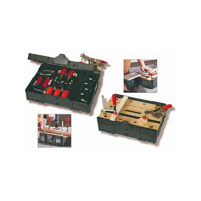 Ο BESSEY Schnellspanner-Systainer STC-S-MFT λειτουργεί ως ένα ευέλικτο κινητό πάγκο εργασίας σχεδιασμένο για τεχνίτες εγκατάστασης. Με μια μοναδική ξύλινη επένδυση (MDF plate) που διαθέτει 20 τρύπες, επιτρέπει ευέλικτη στήριξη για την ικανοποίηση διαφόρων απαιτήσεων έργου.
