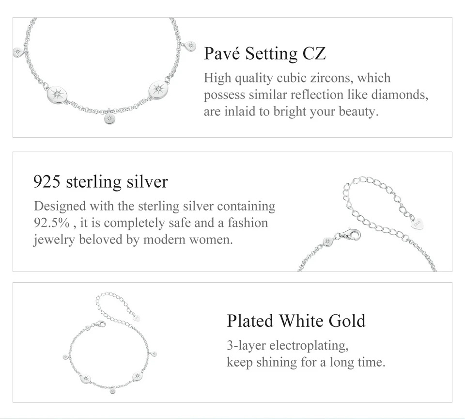 Κομψό βραχιόλι Bamoer, διακοσμημένο με κυβική ζιρκόνια, λευκού χρώματος.