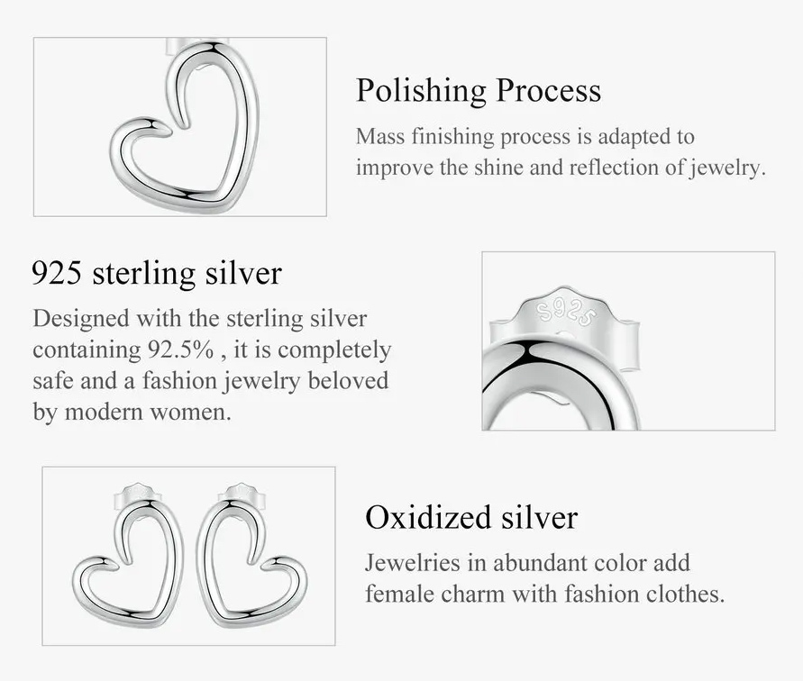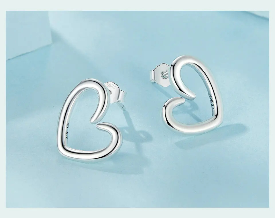 Μοντέρνα σκουλαρίκια καρφωτά Bamoer με σχήμα καρδιάς, κατασκευασμένα από οξειδωμένο ασήμι 925.