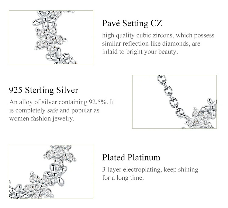 Εντυπωσιακό κολιέ Bamoer, σε ασημί χρώμα, κατασκευασμένο από ασήμι 925 και διακοσμημένο με κυβική ζιρκόνια, λευκού χρώματος που προσφέρει εξαιρετική λάμψη στο κόσμημα.