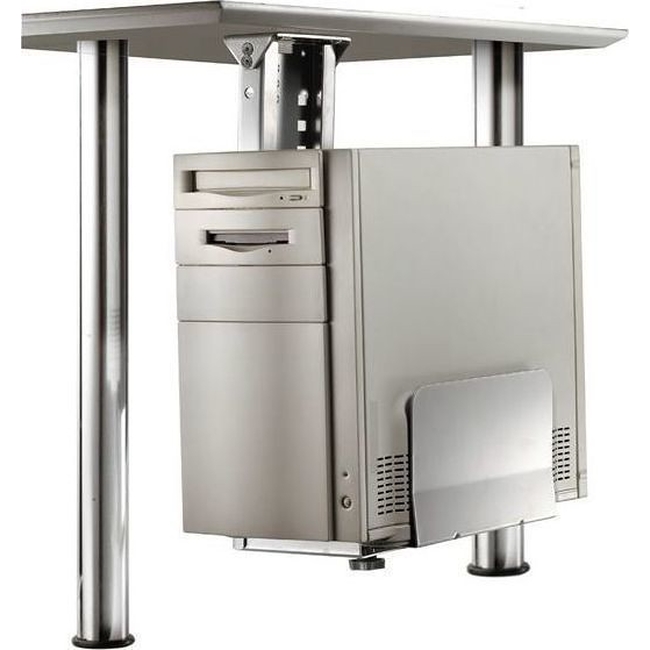 Ο PC-Halter Silber είναι μια πολυλειτουργική και ανθεκτική βάση CPU σχεδιασμένη για την εγκατάσταση υπολογιστών κάτω από τα γραφεία, παρέχοντας μια λύση εξοικονόμησης χώρου για το γραφείο ή το σπίτι.
