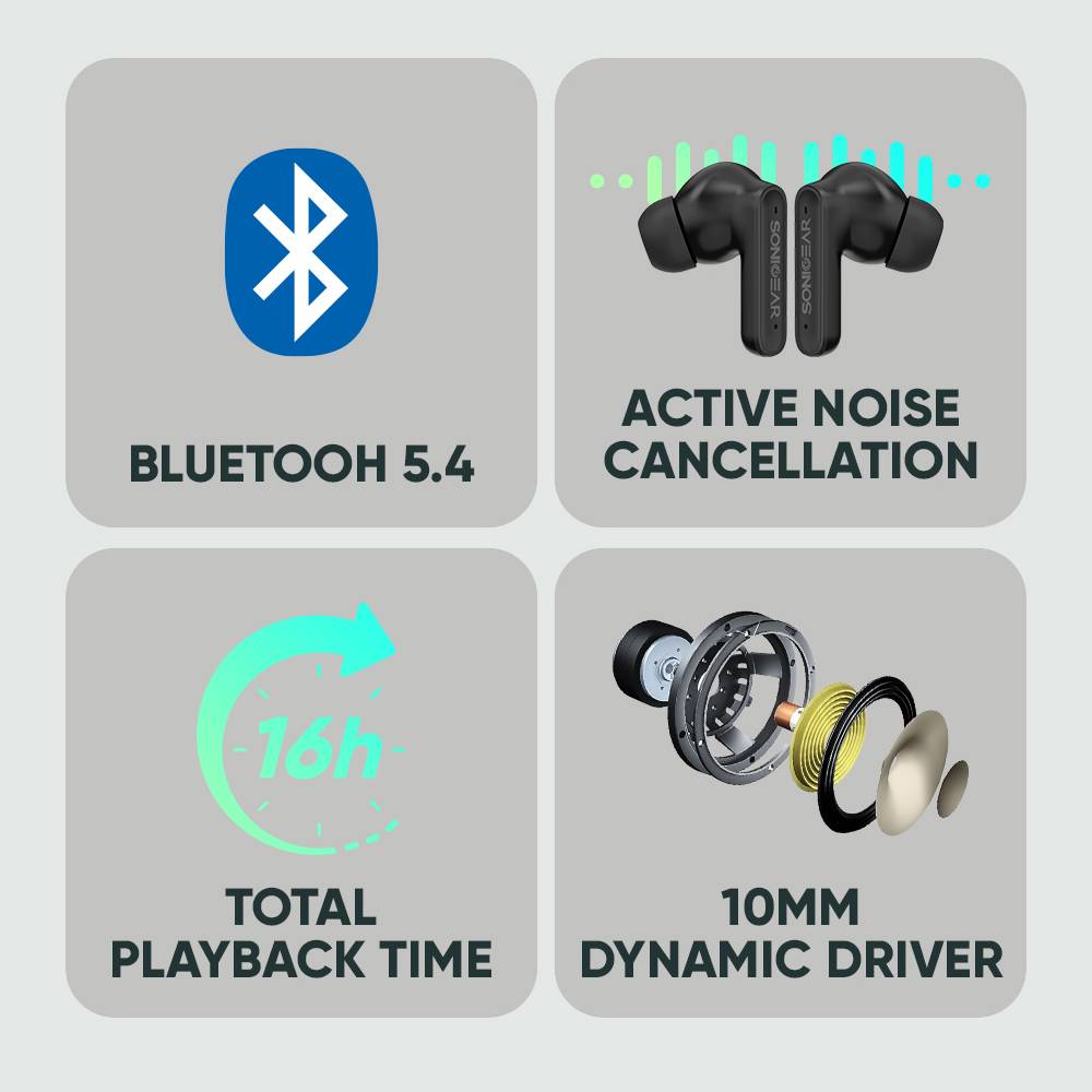 Bluetooth Ακουστικά Sonic Gear Bt5.4 Anc+Enc Earpump Q1 White