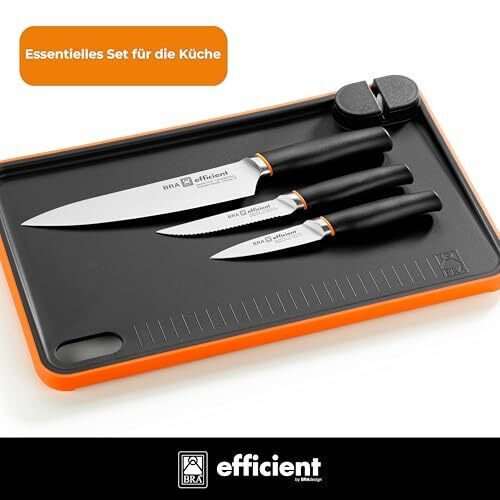 Το Σετ Μαχαιριών BRA A198021 προσφέρει μια πρακτική και ανθεκτική λύση για τις πιο κοινές μαγειρικές εργασίες, σχεδιασμένο για ακρίβεια και άνεση. Το σετ περιλαμβάνει τρία μεσαίου μεγέθους μαχαίρια, ιδανικά για κοπή, φιλετάρισμα και προετοιμασία τροφίμων με ευκολία. Κατασκευασμένα από ανοξείδωτο ατσάλι, αυτά τα μαχαίρια εξασφαλίζουν υψηλή αντοχή στη διάβρωση και διατηρούν την κόψη τους περισσότερο, προσφέροντας σταθερή και ασφαλή απόδοση στην κουζίνα. Το μαύρο χρώμα τους δίνει κομψό και μοντέρνο φινίρισμα, ενώ το εργονομικό τους σχέδιο διευκολύνει το κράτημα και τον χειρισμό, επιτρέποντας βέλτιστο έλεγχο κατά τη μακροχρόνια χρήση. Επιπλέον, το σετ περιλαμβάνει μια ξύστρα κοπής που συμπληρώνει το σύνολο, προσφέροντας κατάλληλη επιφάνεια για διάφορες προετοιμασίες, διατηρώντας την υγιεινή και προστατεύοντας τις επιφάνειες εργασίας. Ο συνδυασμός υλικών και διαστάσεων καθιστά το σετ ένα ευέλικτο και λειτουργικό εργαλείο για ερασιτέχνες και επαγγελματίες σεφ που αναζητούν ποιότητα και άνεση σε ένα προϊόν. Συνοπτικά, το σετ BRA A198021 αποτελεί μια πρακτική, ανθεκτική και απαραίτητη επιλογή για όσους εκτιμούν αξιόπιστα και καλοσχεδιασμένα μαγειρικά εργαλεία.
