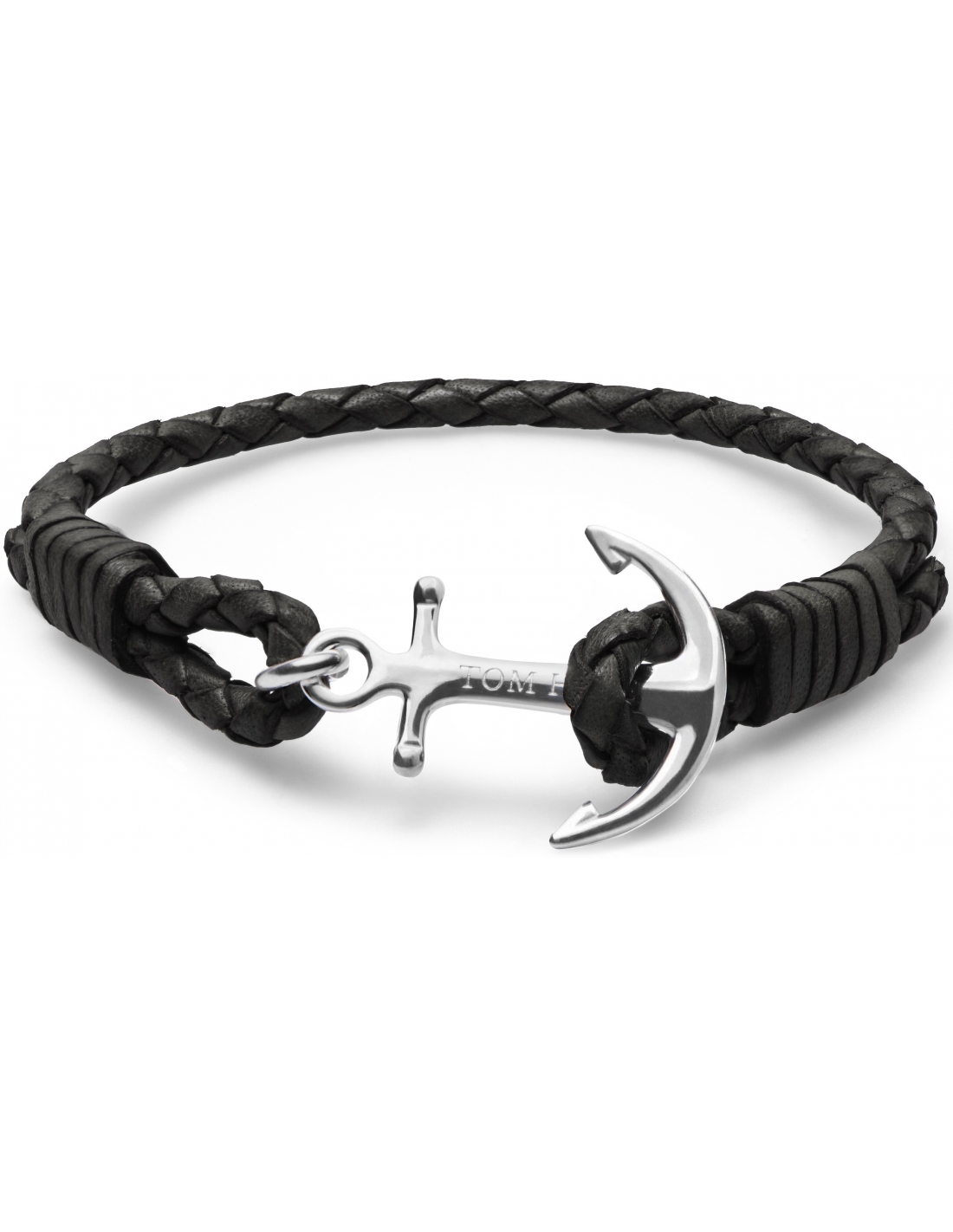 UNISEX BRACELET TOM HOPE TM0200 (18CM ). Material: LEATHER, STERLING SILVER. Colour: BLACK. Measures: 18CM.. . TOM HOPE JET BLACK PELLE NERA + ANCORA ARGENTO S