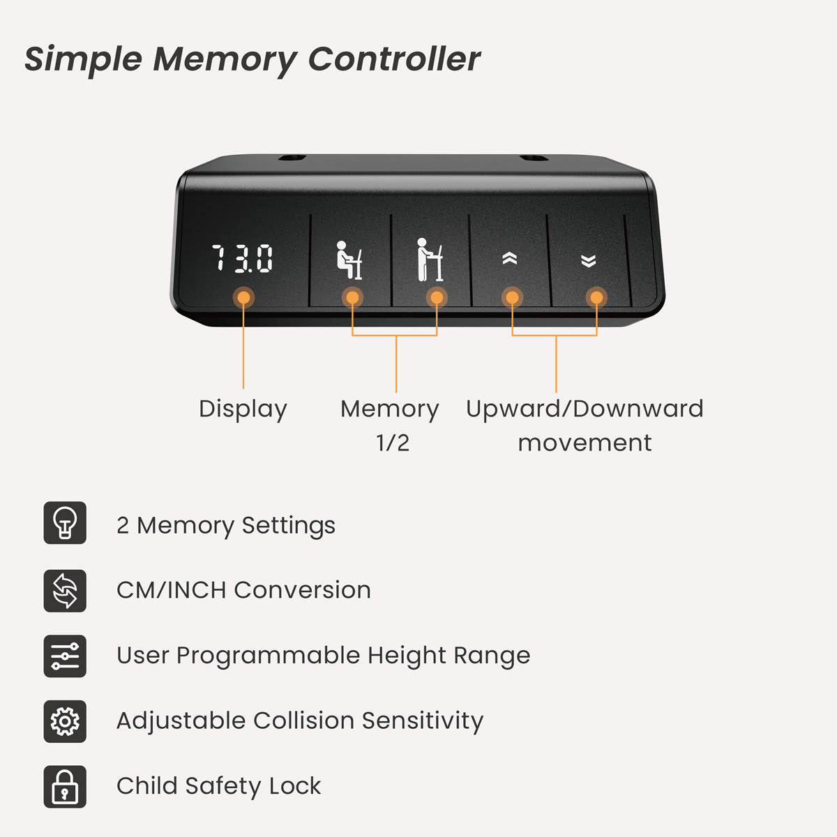 Διαθέτει μνήμη με 2 προεπιλεγμένες ρυθμίσεις ύψους, επιτρέποντάς σας να αποθηκεύσετε τις προτιμήσεις σας για άμεση ρύθμιση.