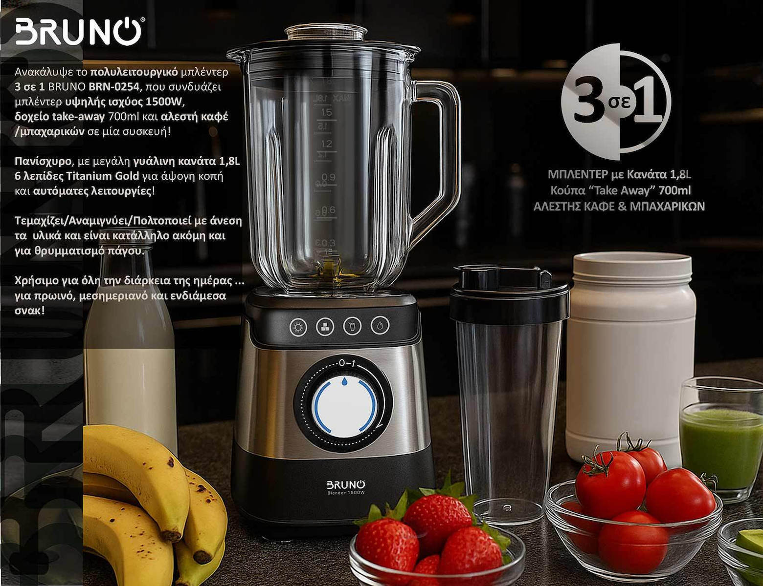 BRUNO μπλέντερ 3 σε 1 προηγμένων λειτουργιών BRN-0254
