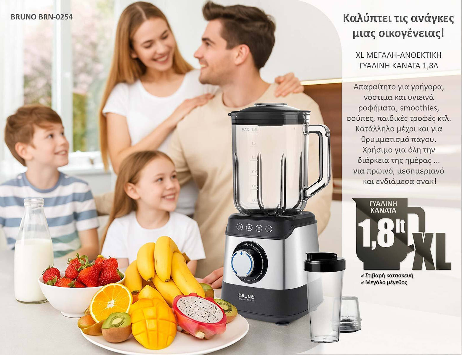 -Μπλέντερ με γυάλινη κανάτα 1,8L,