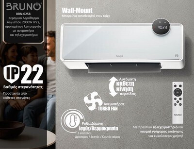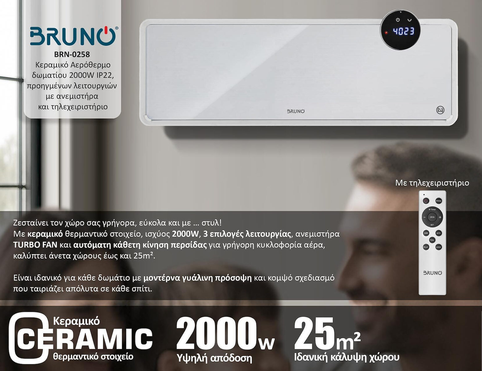 BRUNO κεραμικό αερόθερμο BRN-0258, 2000W, IP22, προηγμένων λειτουργιών, με ανεμιστήρα