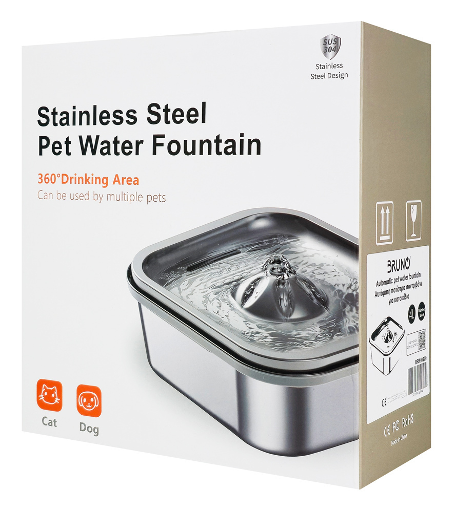 BRUNO αυτόματη ποτίστρα για κατοικίδια BRN-0279, ανοξείδωτη, 4L, ασημί