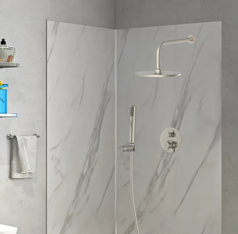 BRUNO σετ κεφαλή ντους με τηλέφωνο BRN-0265, αναμεικτική, εντοιχισμού, ασημί
