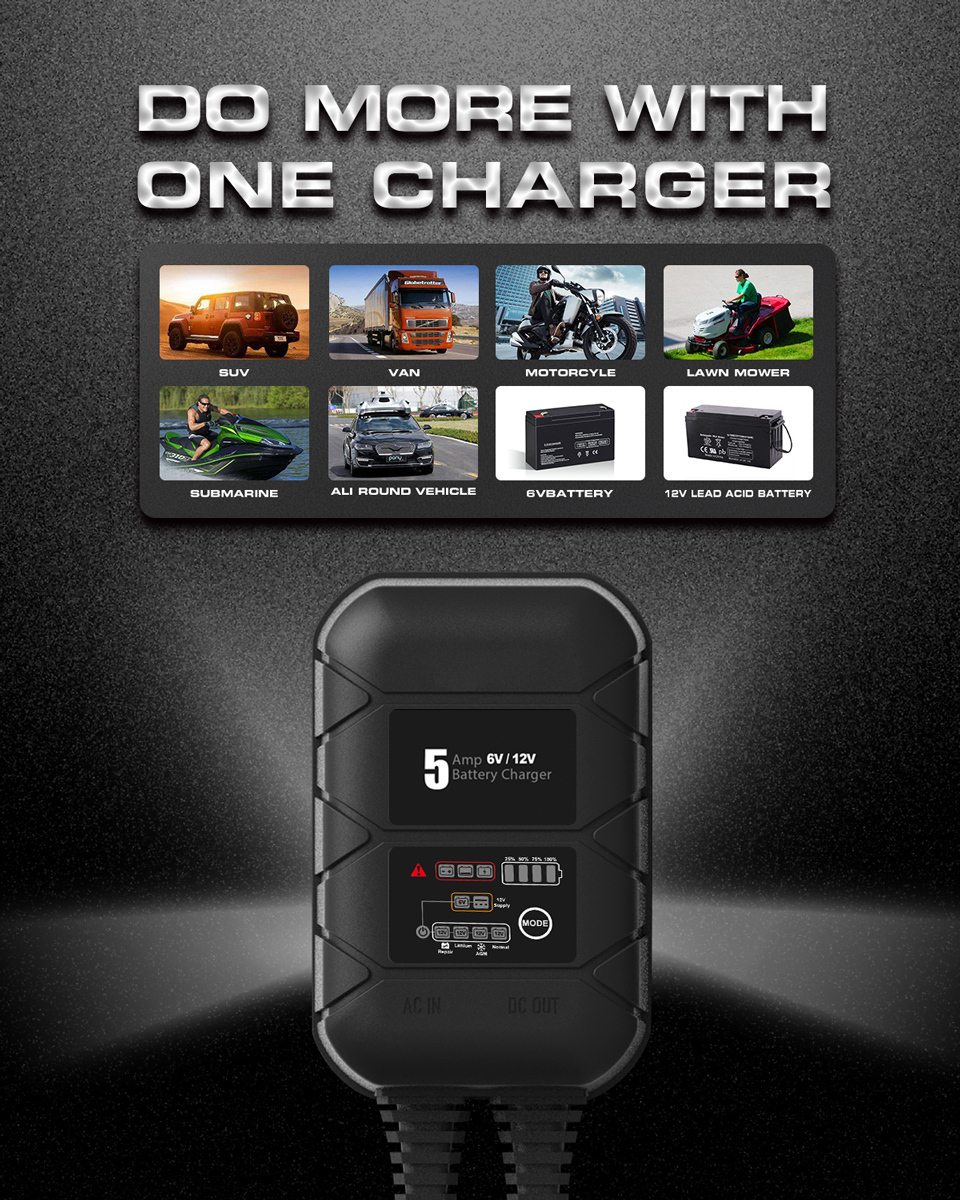 Ο BYGD S5000 είναι ένας αξιόπιστος και έξυπνος φορτιστής–συντηρητής μπαταρίας, ιδανικός για αυτοκίνητα, μοτοσυκλέτες και άλλα οχήματα με μπαταρίες 6V ή 12V.