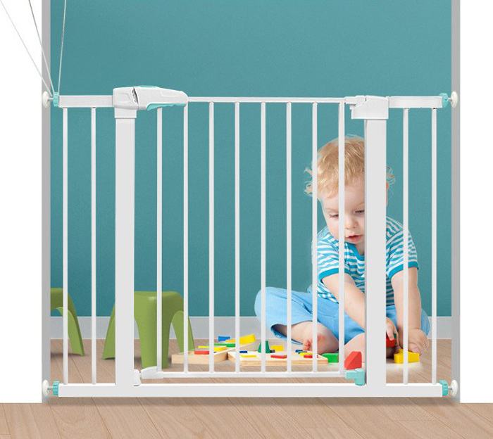 Μεταλλική πόρτα ασφαλείας για την προστασία παιδιών μικρής ηλικίας. Τοποθετείται σε μέρη του σπιτιού που βρίσκονται κοντά σε σκάλες ή άλλα σημεία που θεωρούνται επικίνδυνα για τα παιδιά. Επιπλέον, μπορεί να χρησιμοποιηθεί και ως διαχωριστικό για σκύλους, αποτρέποντας την πρόσβαση τους σε σκάλες ή συγκεκριμένους χώρους του σπιτιού. Διαθέτει ύψος 76cm και ανοίγει και προς τις 2 πλευρές.