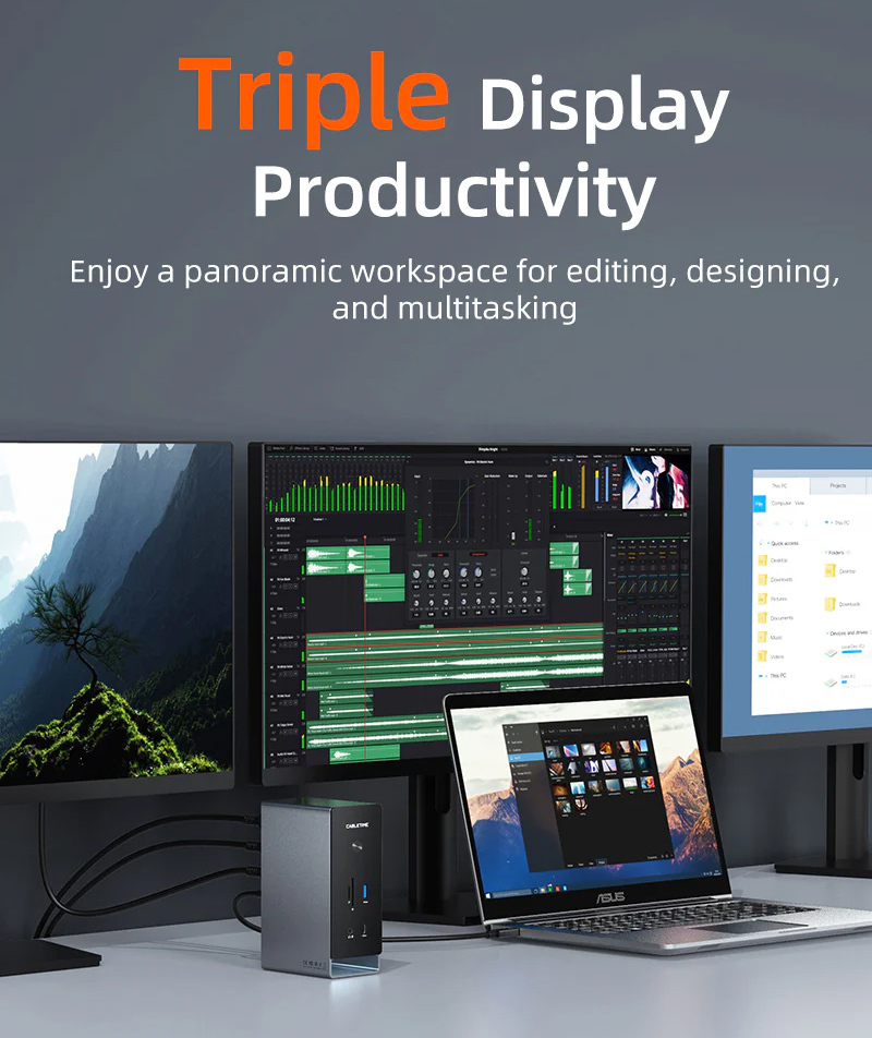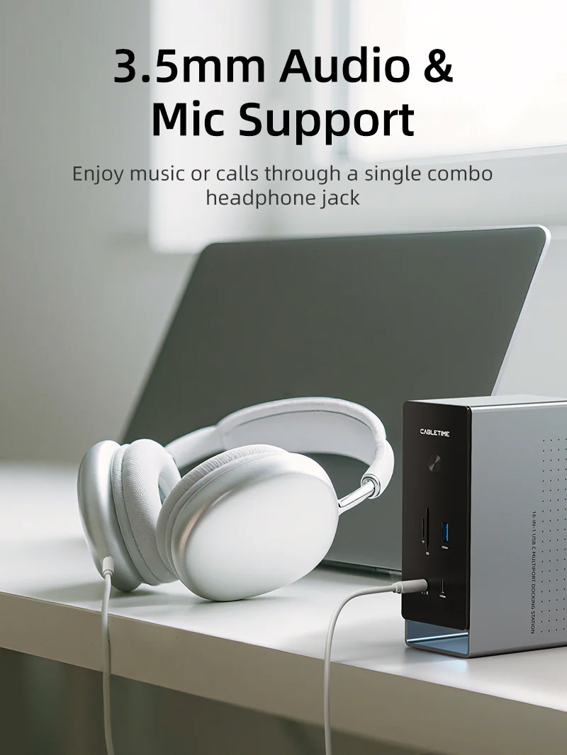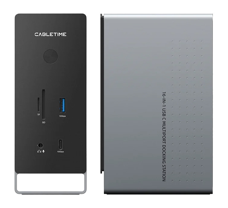 CABLETIME Docking Station USB C 16 Θυρών 100W PD 1000Mbps MST Γκρι