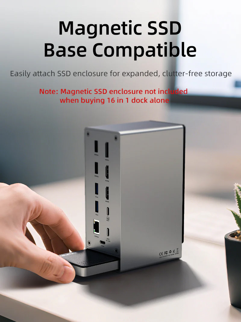 Μπορεί να συνδυαστεί με την μαγνητική θήκη για M.2 NVME SSD CT-SSD04-AG (πωλείται χωριστά) η οποία μπορεί να χωρέσει στο άνοιγμα που βρίσκεται στο κάτω μέρος του docking station.
